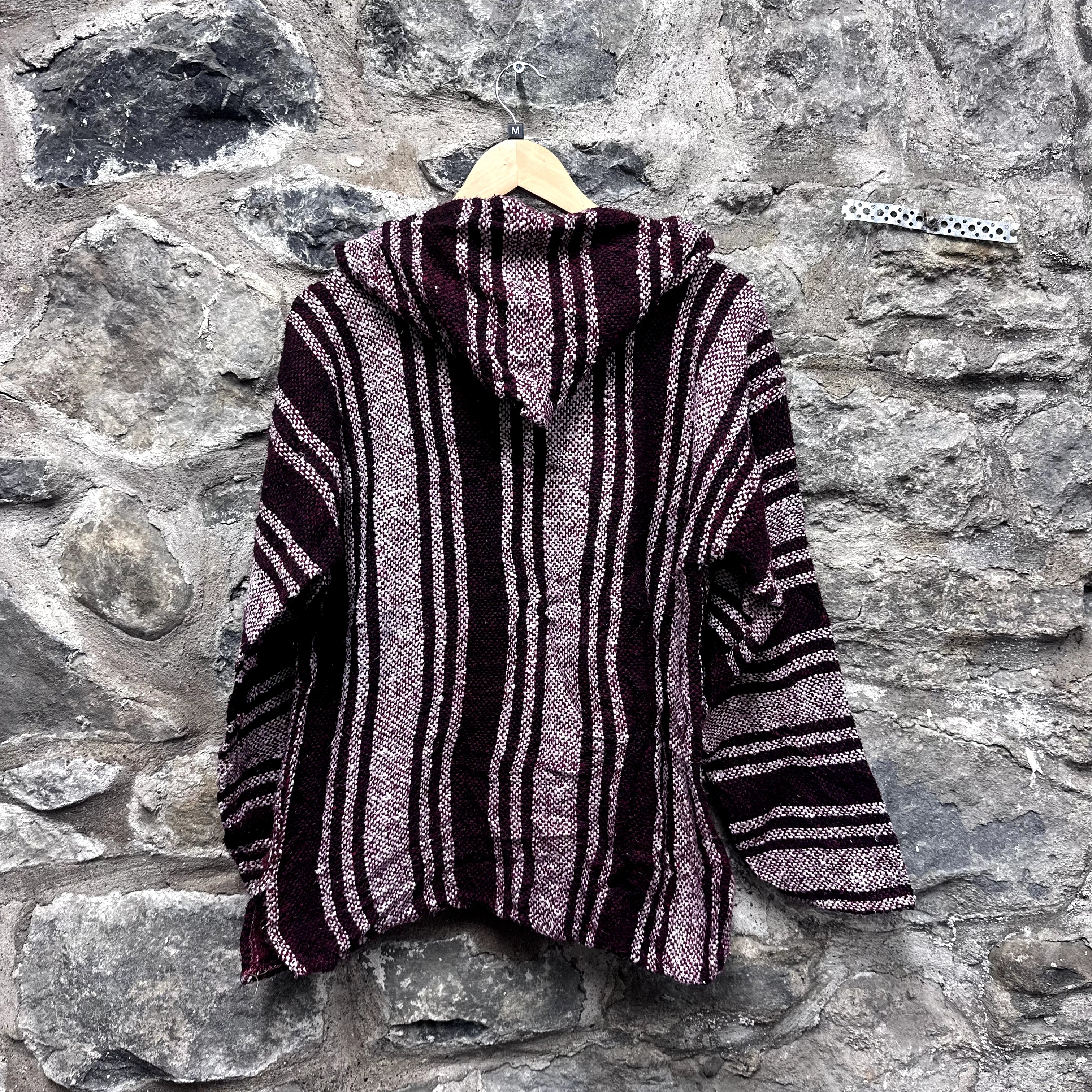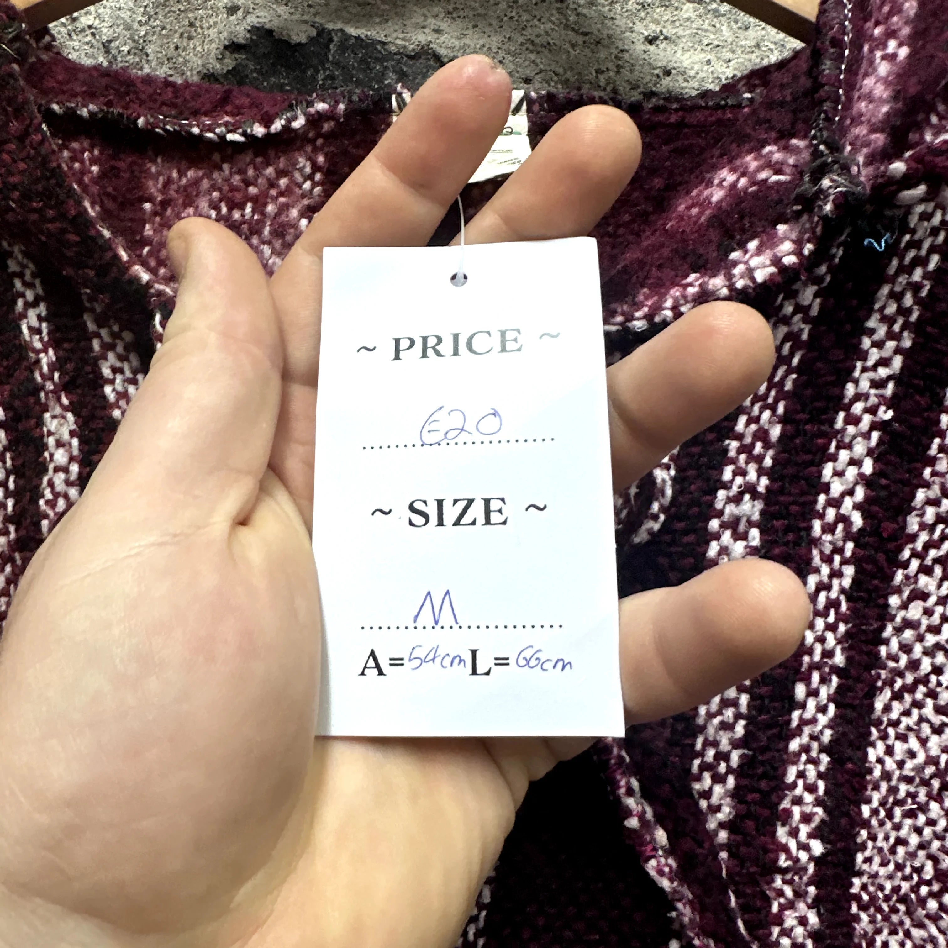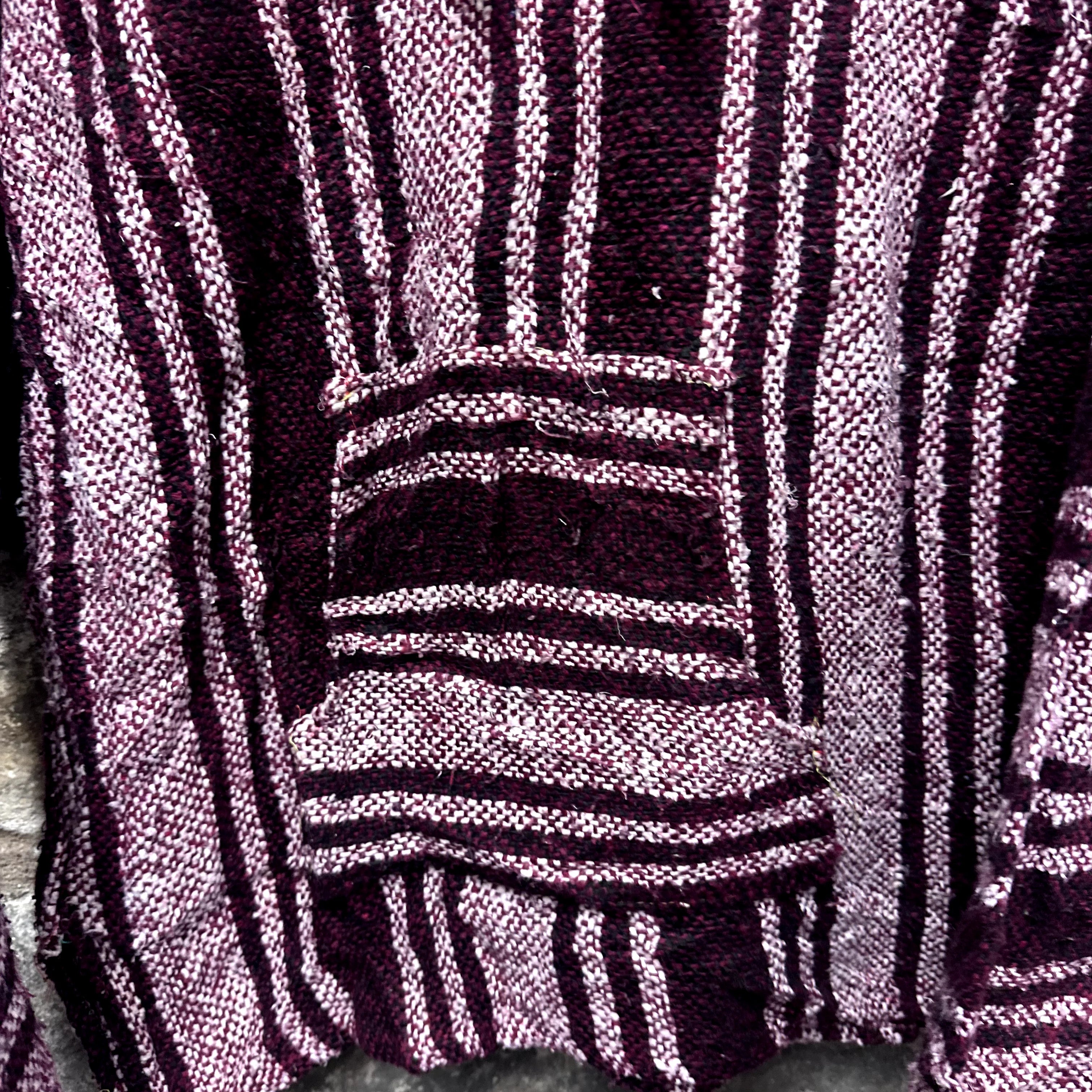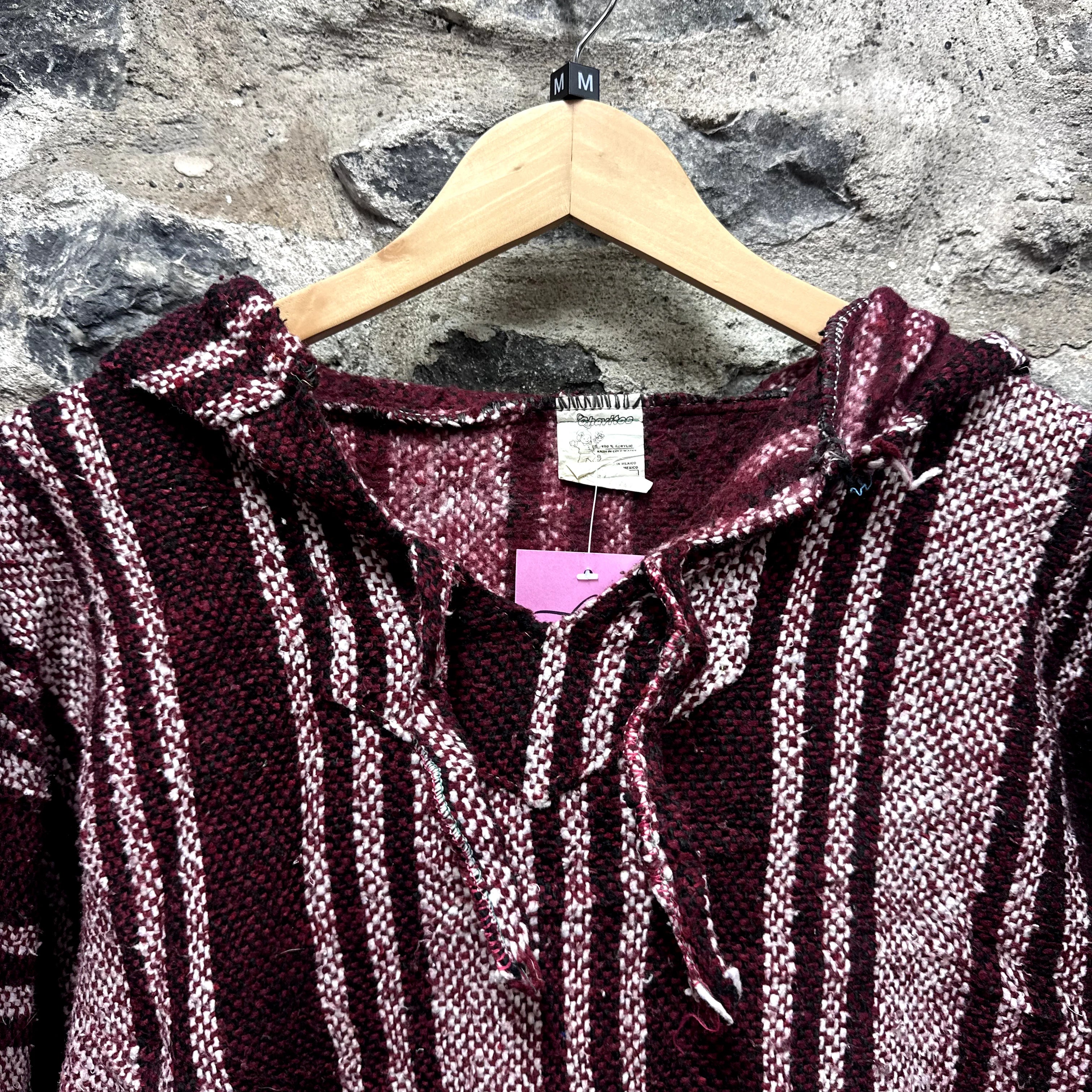 Product details: Heavy woven knit, brown and cream striped pattern, kangaroo pocket, drawstring hood, relaxed wide fit. Genuine vintage. Irish Dogs hang tag present. Brand: Irish Dogs Vintage Clothing.| Label Size | |
