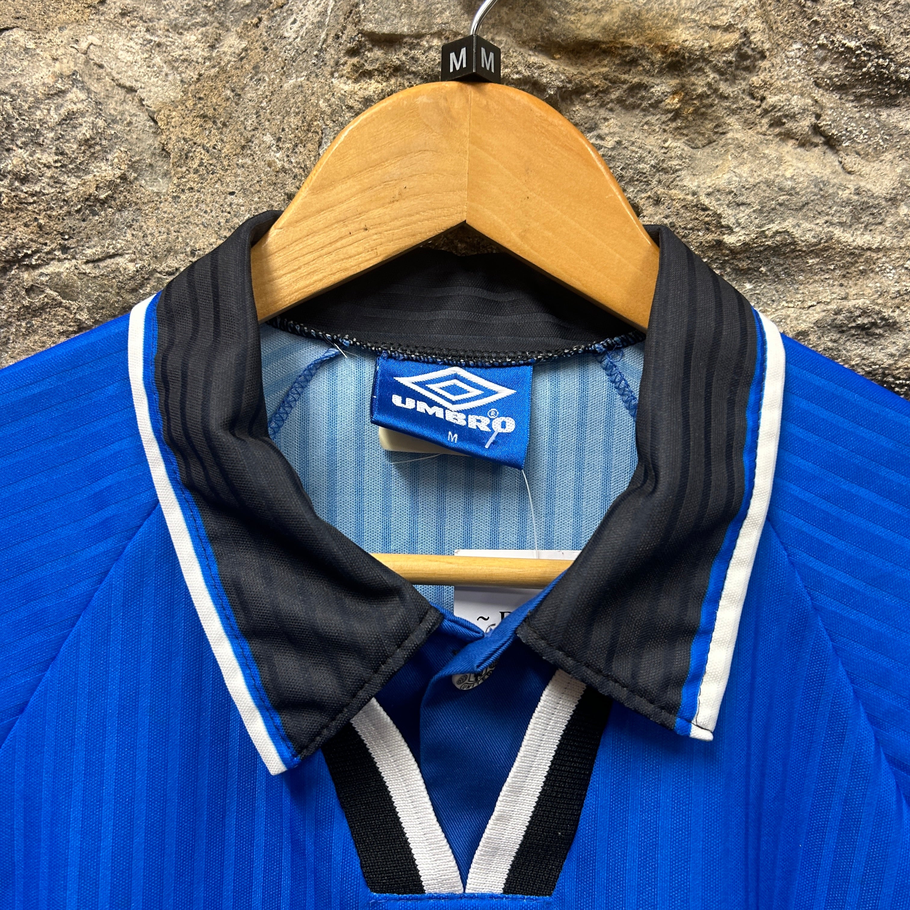 This vintage Umbro Football Shirt in Blue is size M.