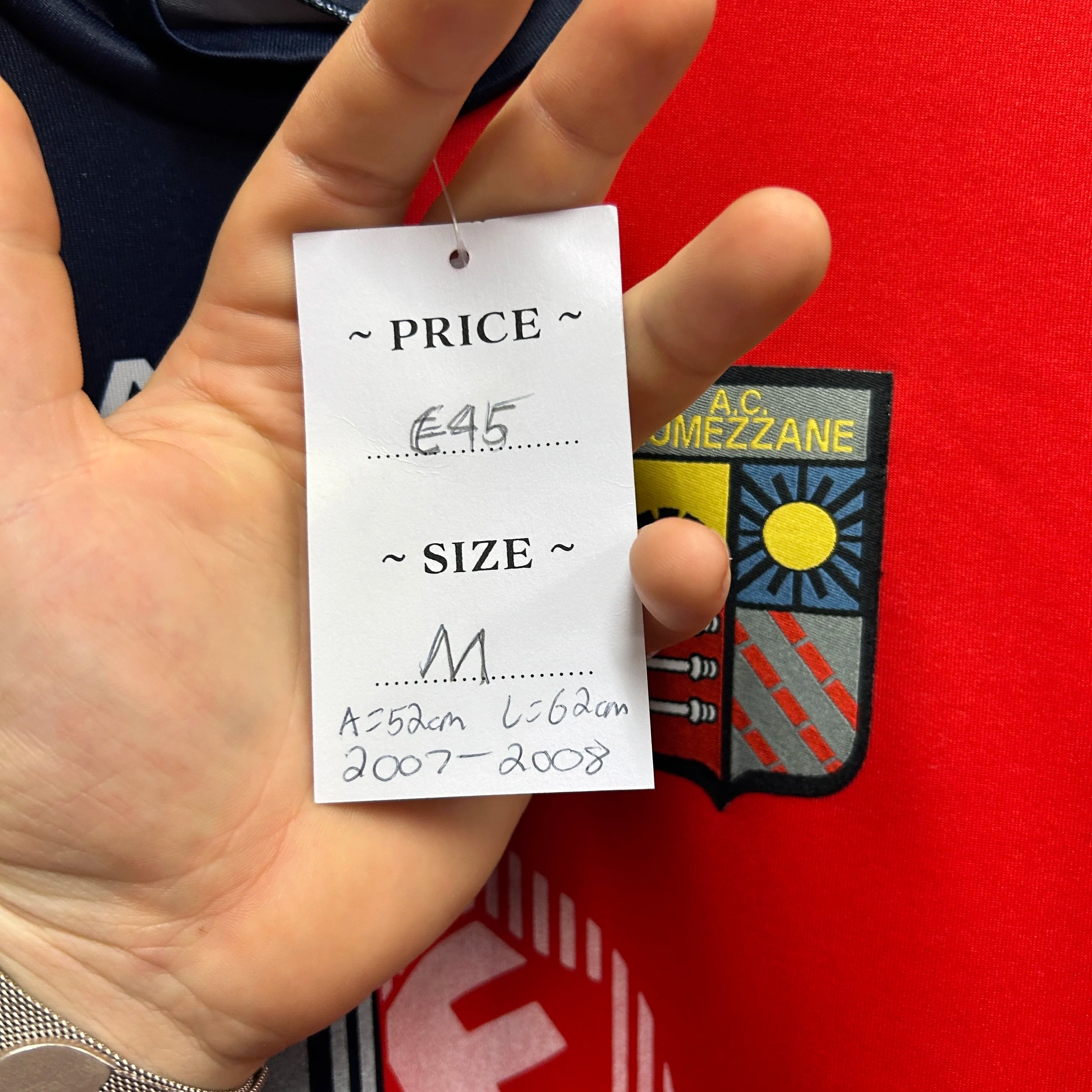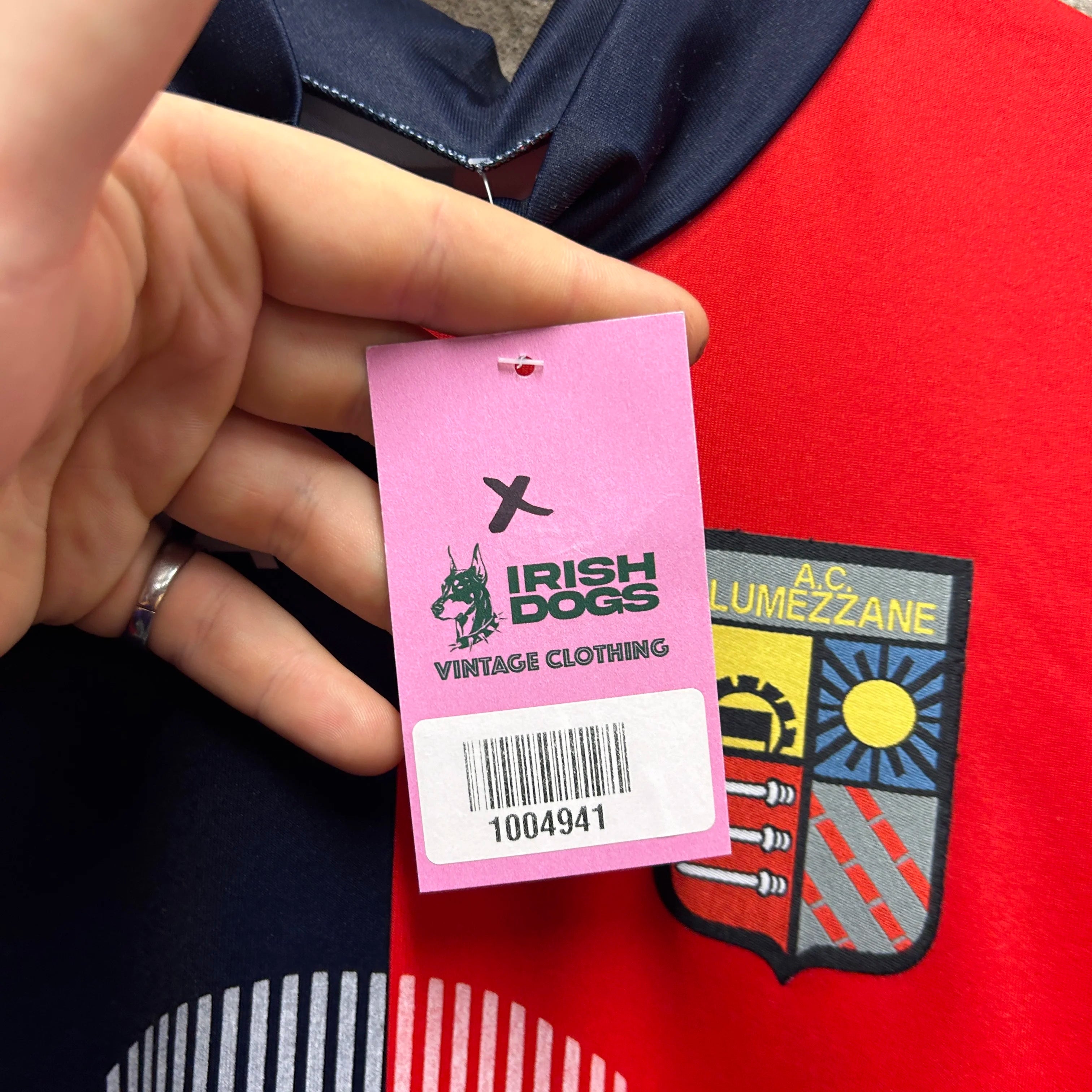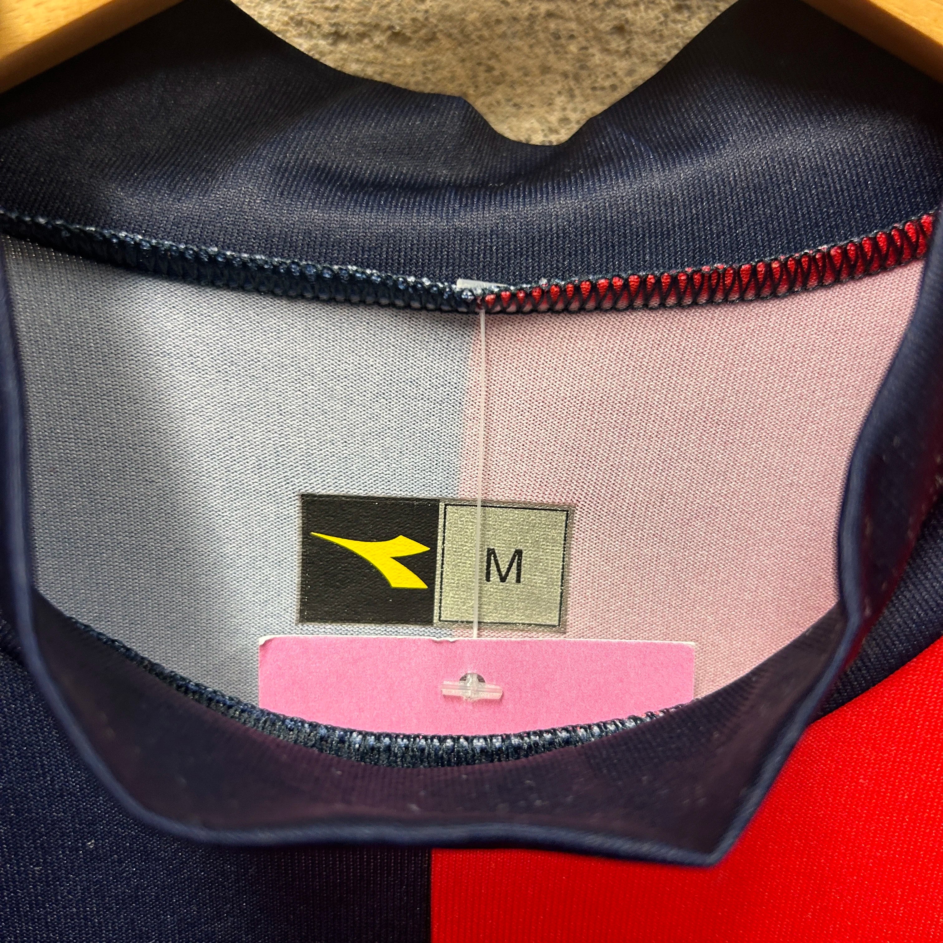 Product details: Red and navy split front and back, Diadora branding, A.C. Lumezzane club crest, MBF Bonomi sponsor, number 3 on reverse, embroidered club name at collar and hem, polyester fabric, made in Italy. Circa 2007-2008 season. Brand: Diadora.| Label Size | |