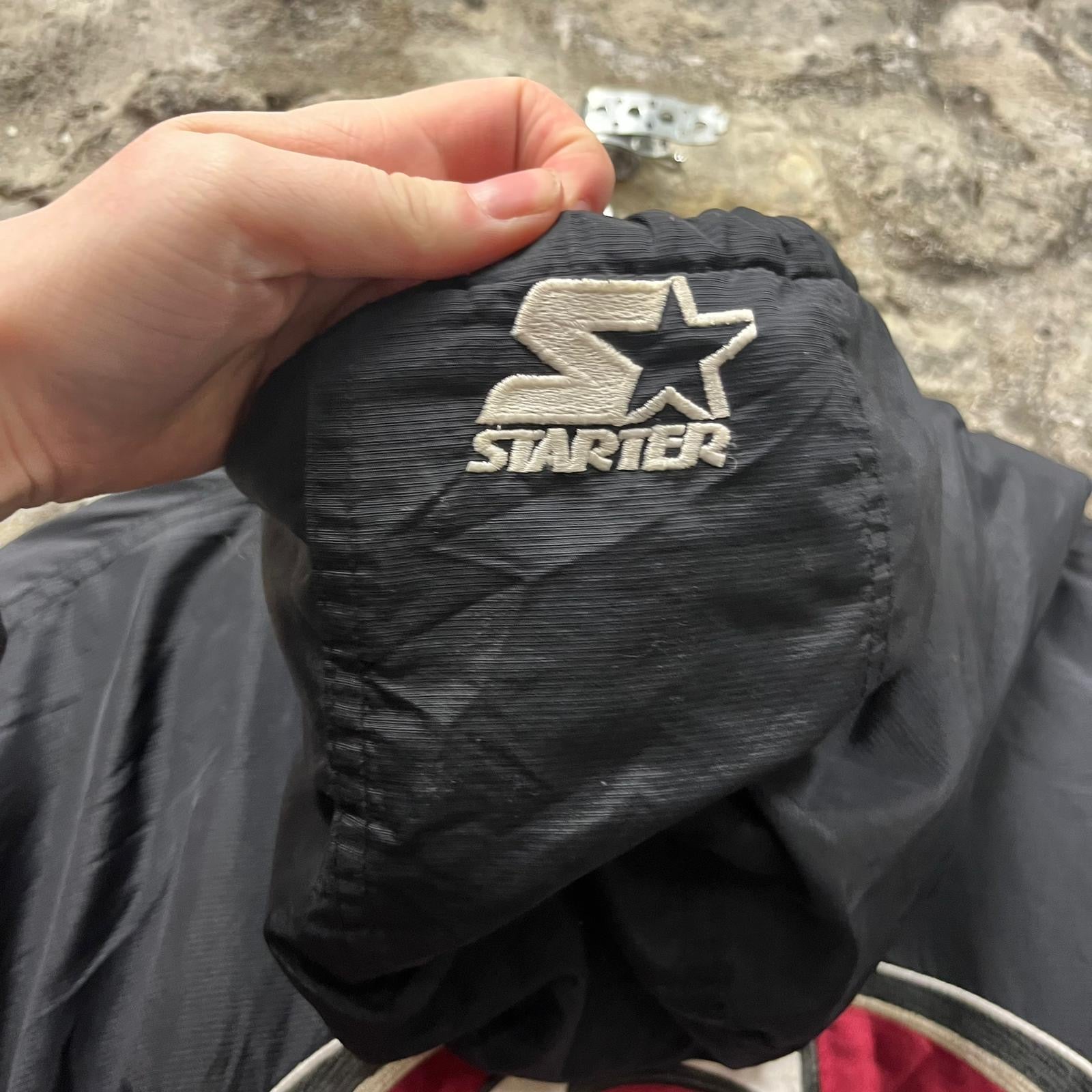 This vintage Starter Jacket in Black is size XL.