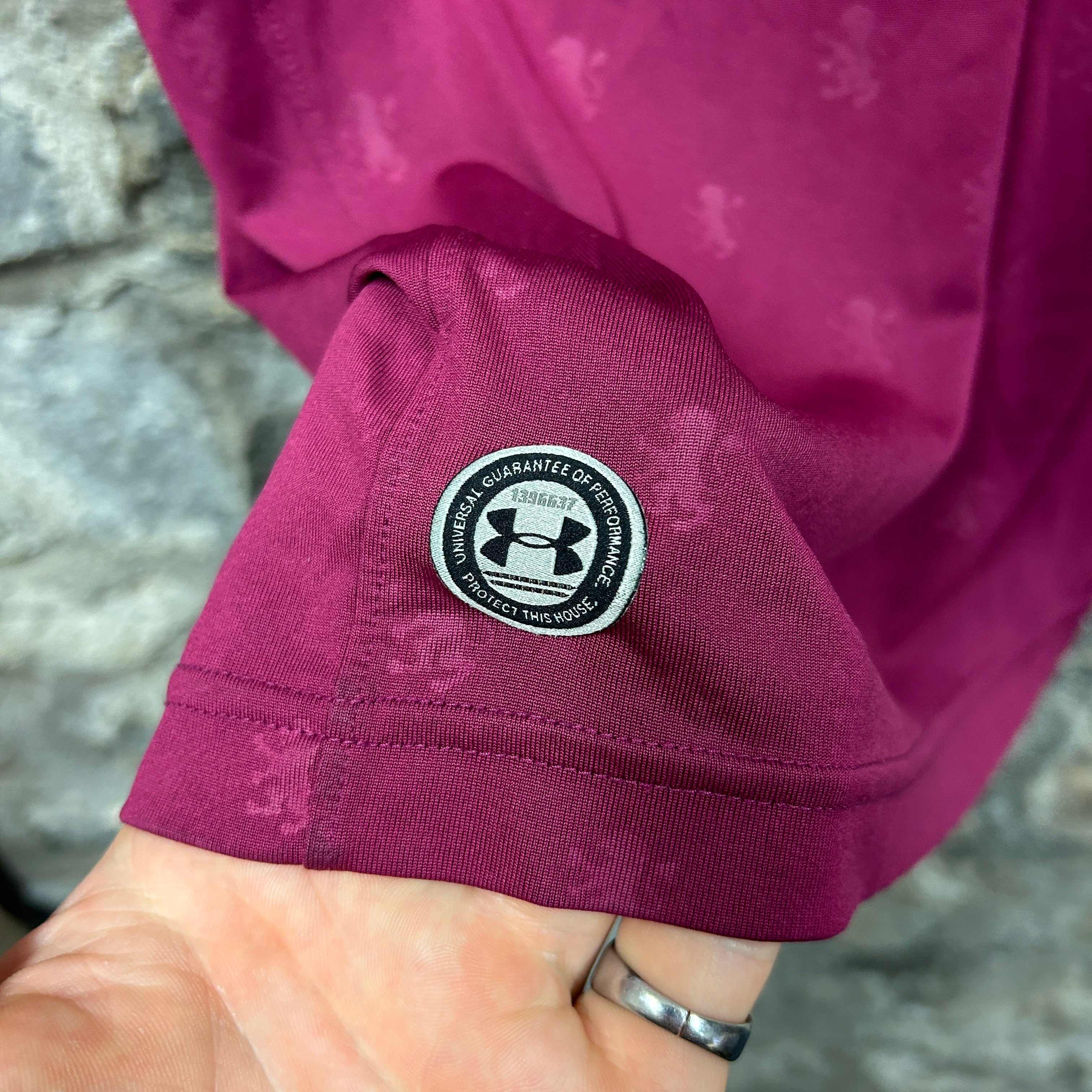 This vintage Under Armour Football Shirt in Purple is size L.