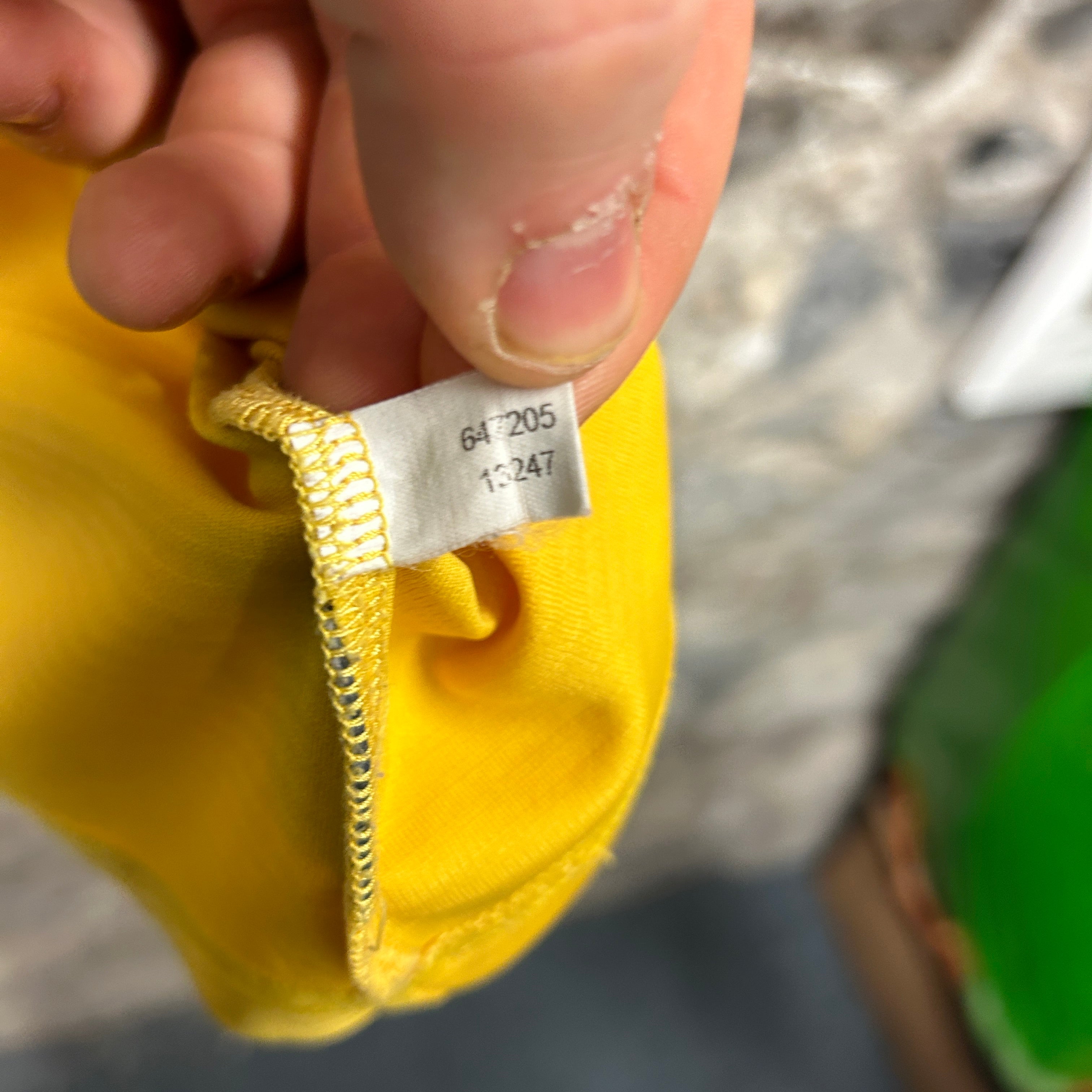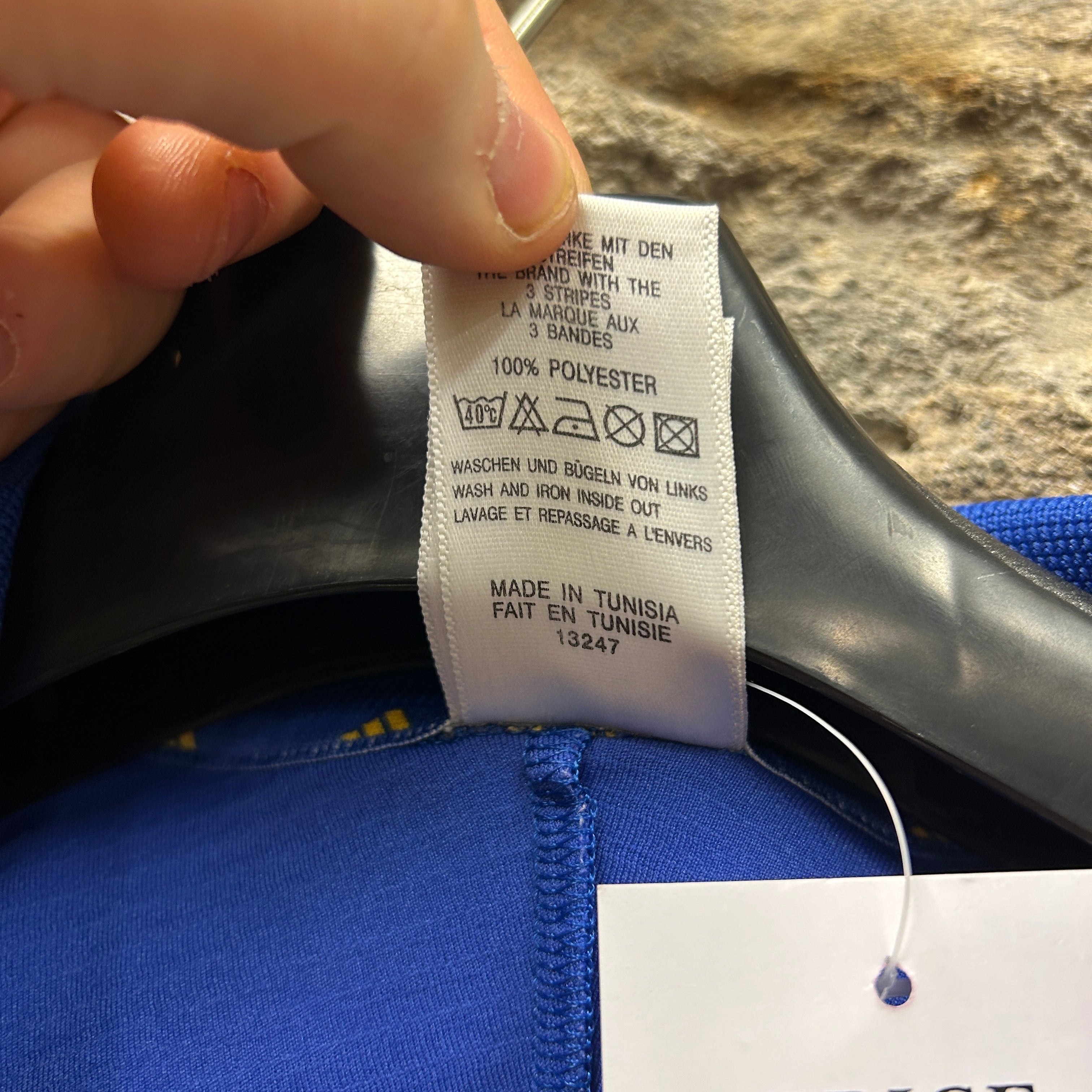 Product details: Adidas Sweden (S.F.F.) football shirt in yellow with royal blue yoke/sleeves; embroidered Adidas logo and S.F.F. crest on chest; ribbed polo collar with yellow stripe detail; V-neck insert with yellow trim; adidas 3-stripe tape on shoulders; white piping across chest and side panels; blue “SFF Authentic Licensed Product” hem patch; lightweight performance knit. Brand: Adidas.| Label Size | |
