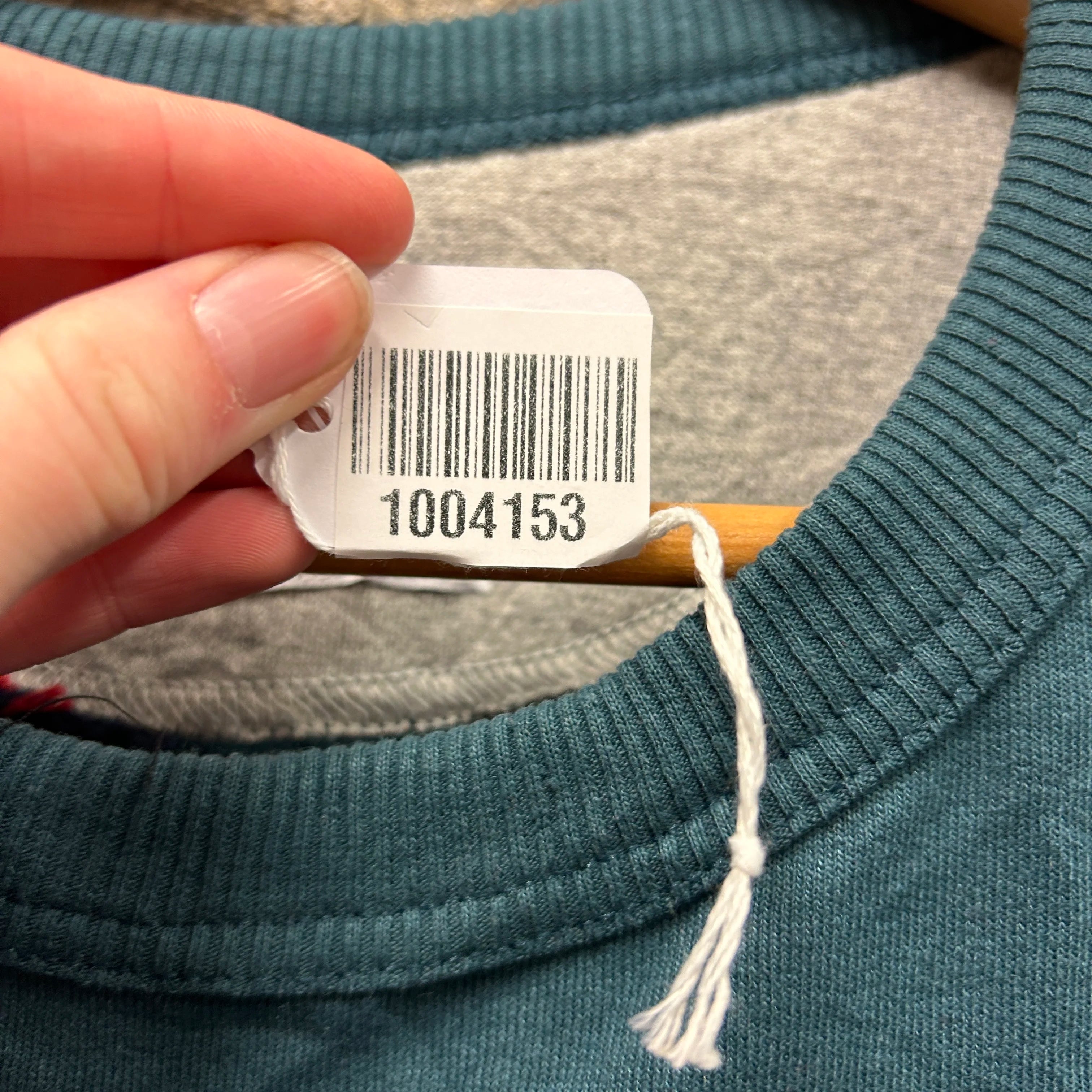 Product details: Green Champion crewneck with one sleeve and part front/back panel in multi-color Nordic fair isle knit. Champion logos embroidered on chest and cuff. Upcycled, patchwork construction. Brand: Champion.