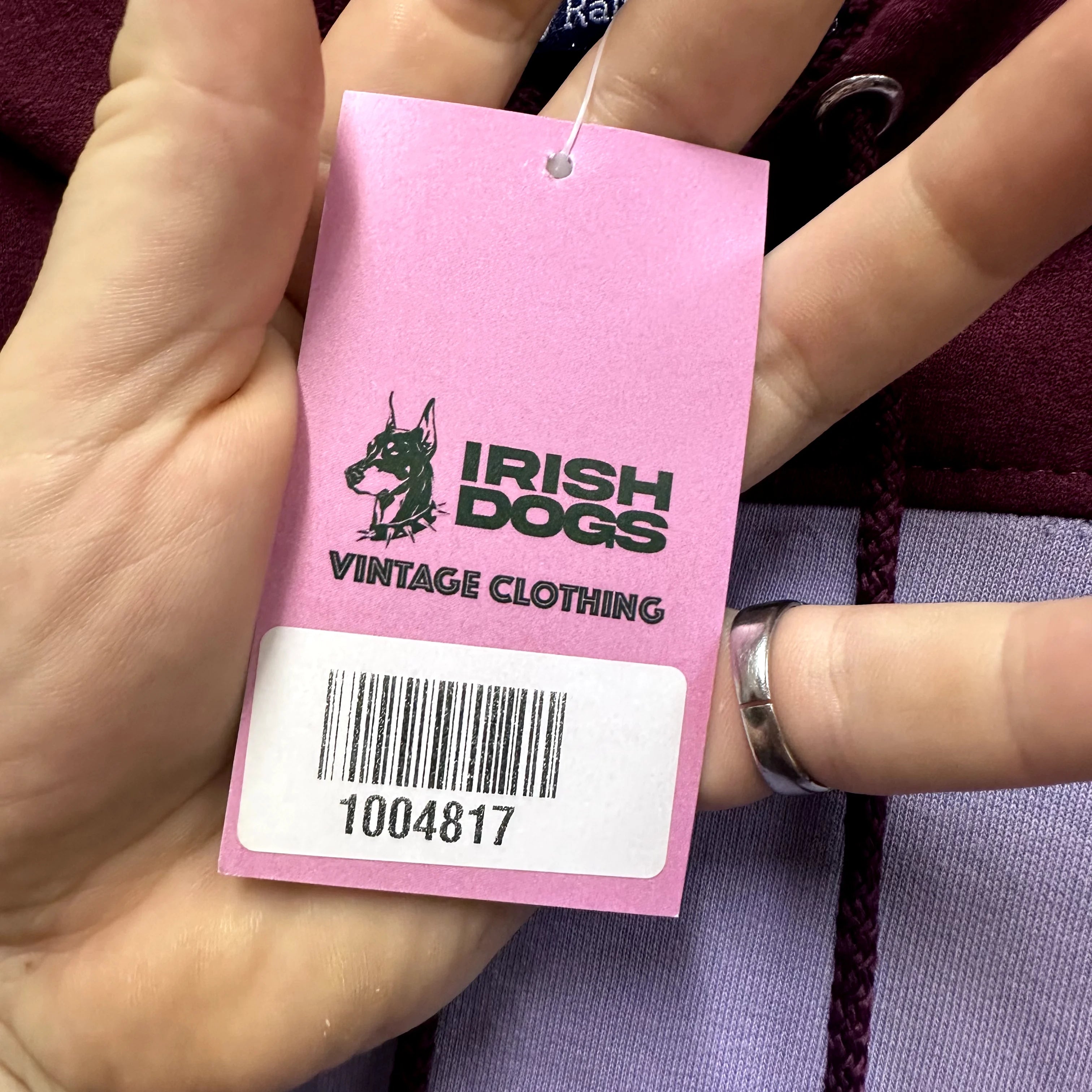 Product details: Colorblock design with burgundy base and purple insert, small Polo Pony chest embroidery, drawstring hood, kangaroo pocket, ribbed cuffs and hem, soft fleece lining, vintage Polo label. Brand: Polo By Ralph Lauren.| Label Size | |