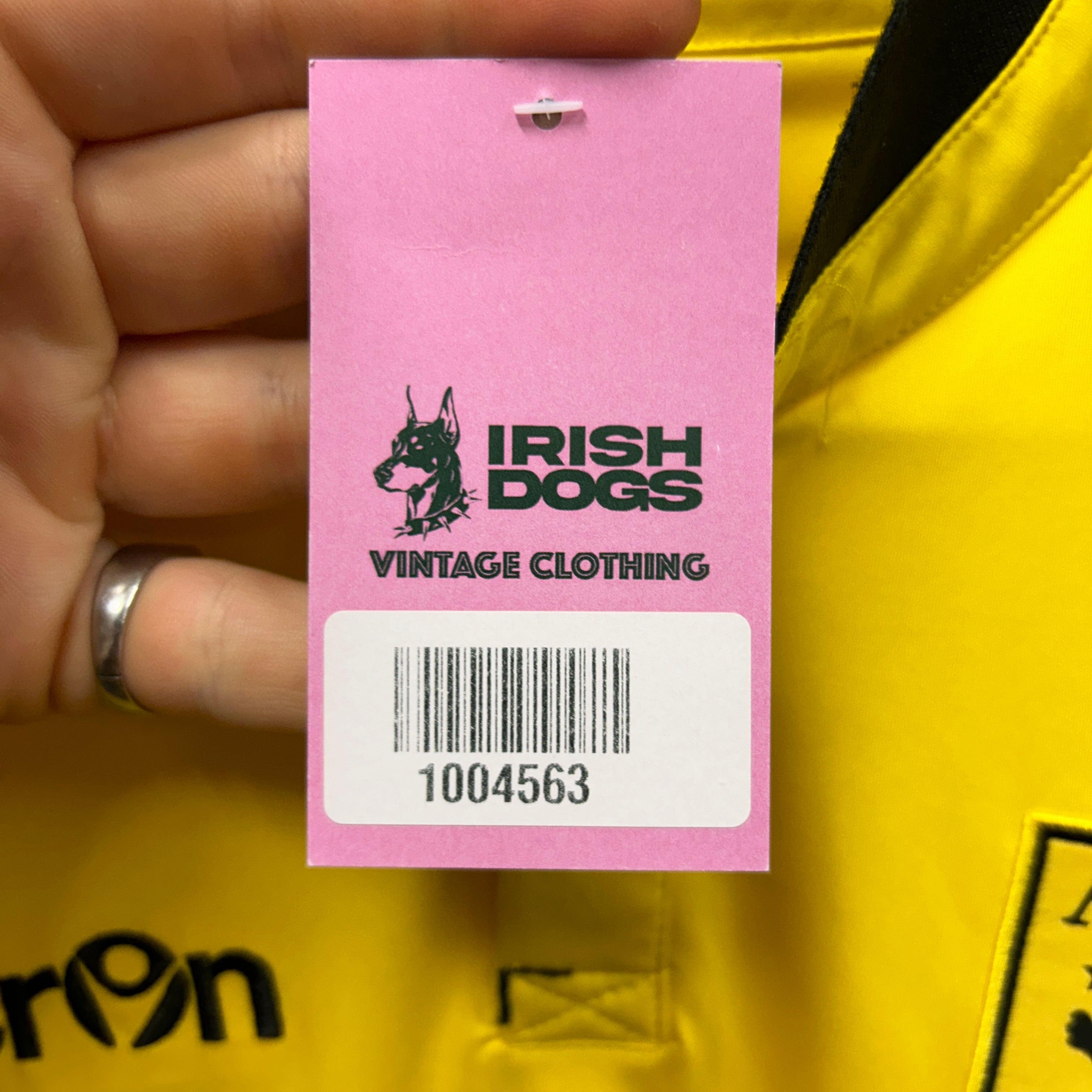 This vintage Macron Football Shirt in Yellow is size L.