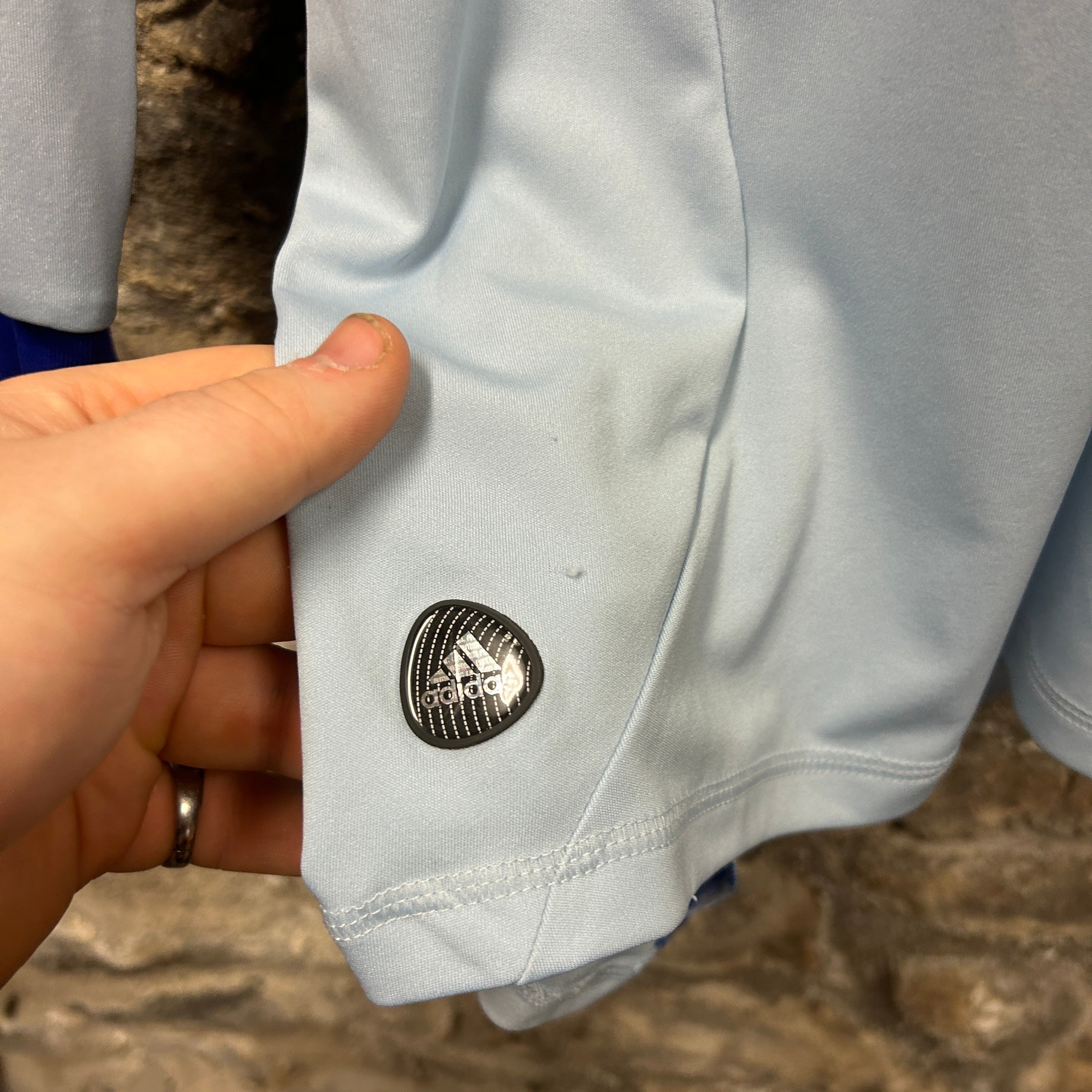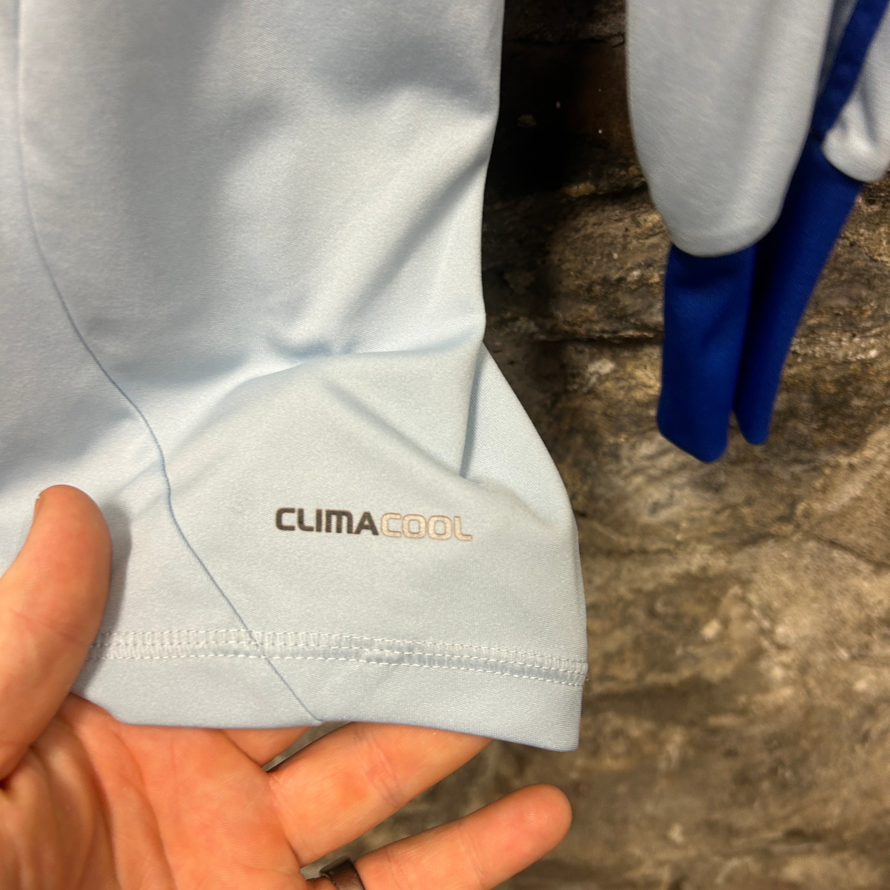 This vintage Adidas Football Shirt in Blue is size S.