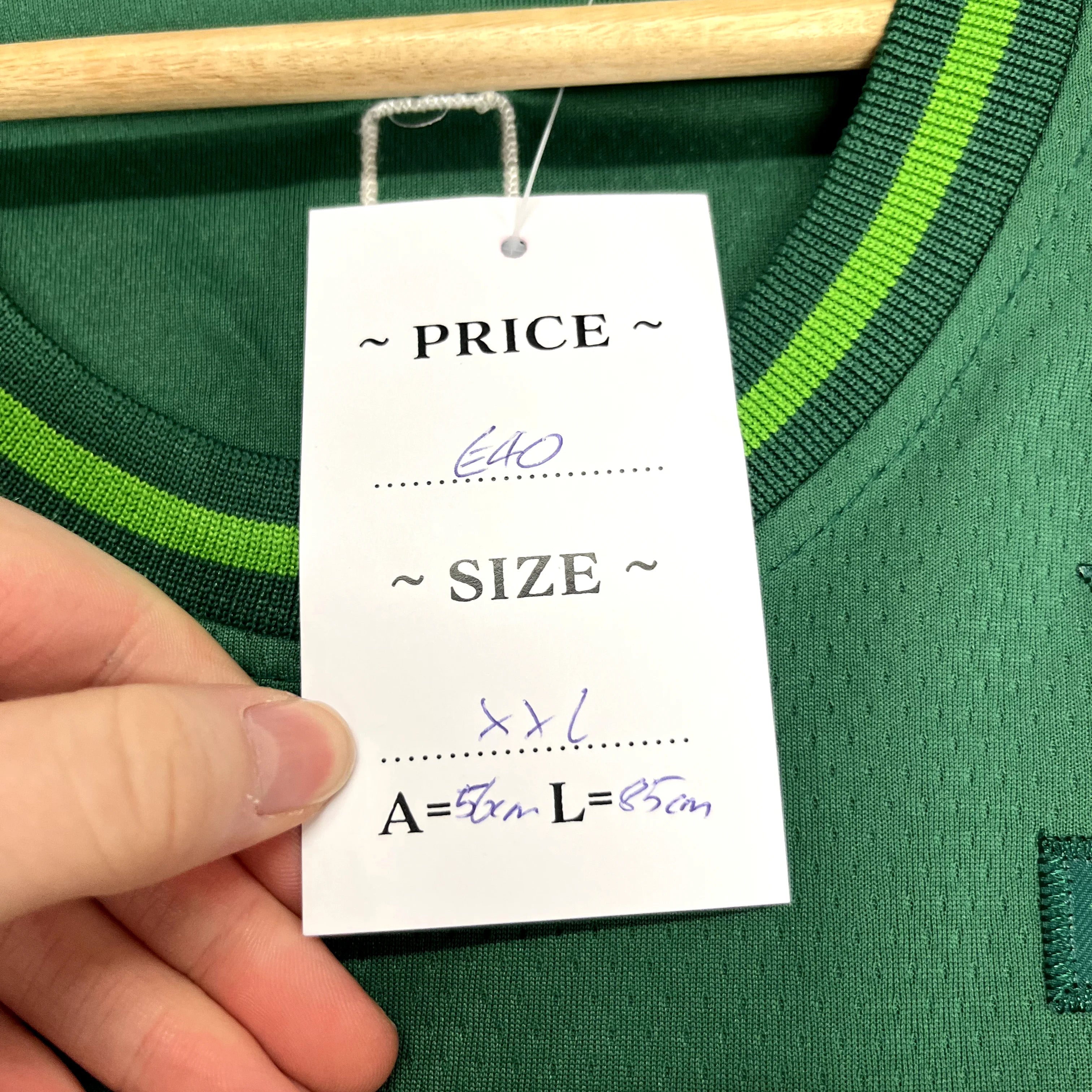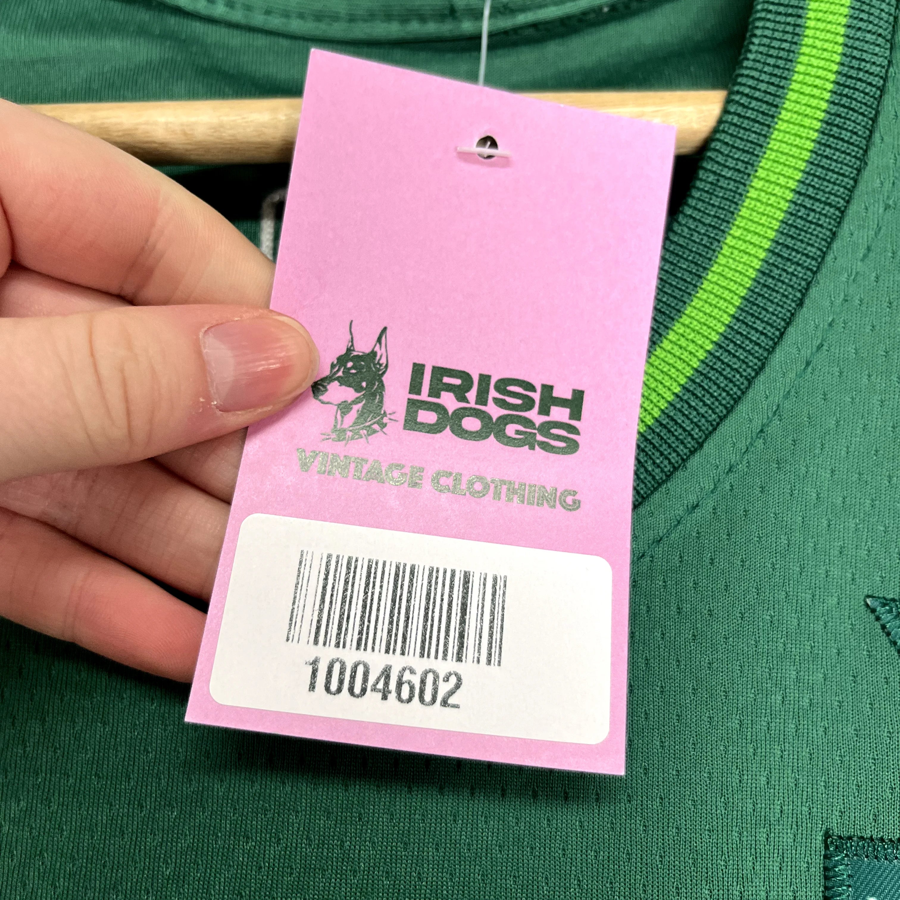 Product details: Green mesh NBA Swingman jersey with white and green striped trim, 'Celtics' and '0' on front, 'Tatum 0' on back, Vistaprint sponsor, Nike logo, and authentic product label. Tag from Irish Dogs Vintage Clothing. Brand: Nike.| Label Size | |
