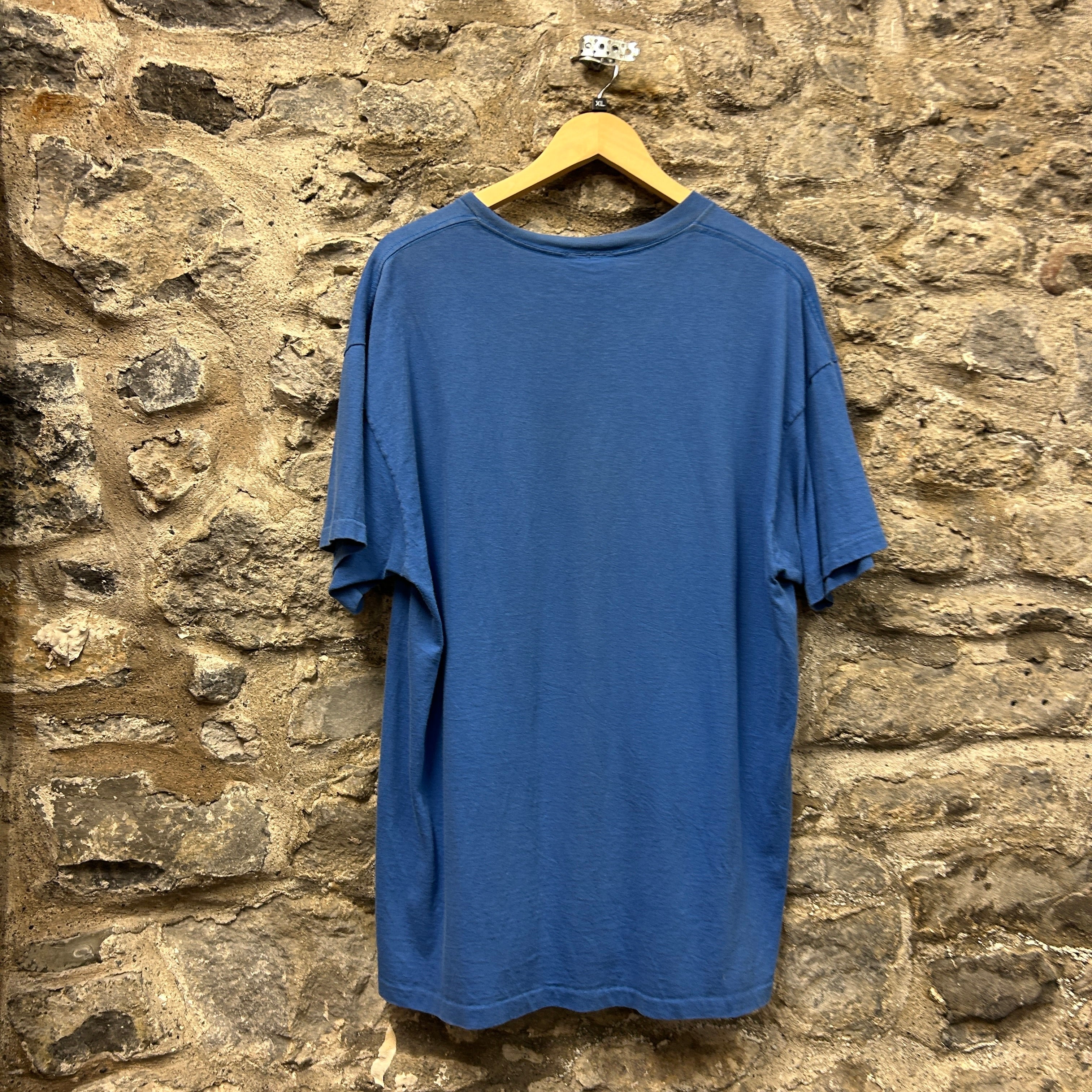 Product details: Vintage blue M&M’s graphic T-shirt featuring large front print of the blue M&M character with thumbs up, classic crew neck, and relaxed oversized fit with dropped shoulders and single stitch-style sleeves. Promo/merch style tee with slight natural fade giving a worn-in feel. Brand: M&m's.| Label Size | |