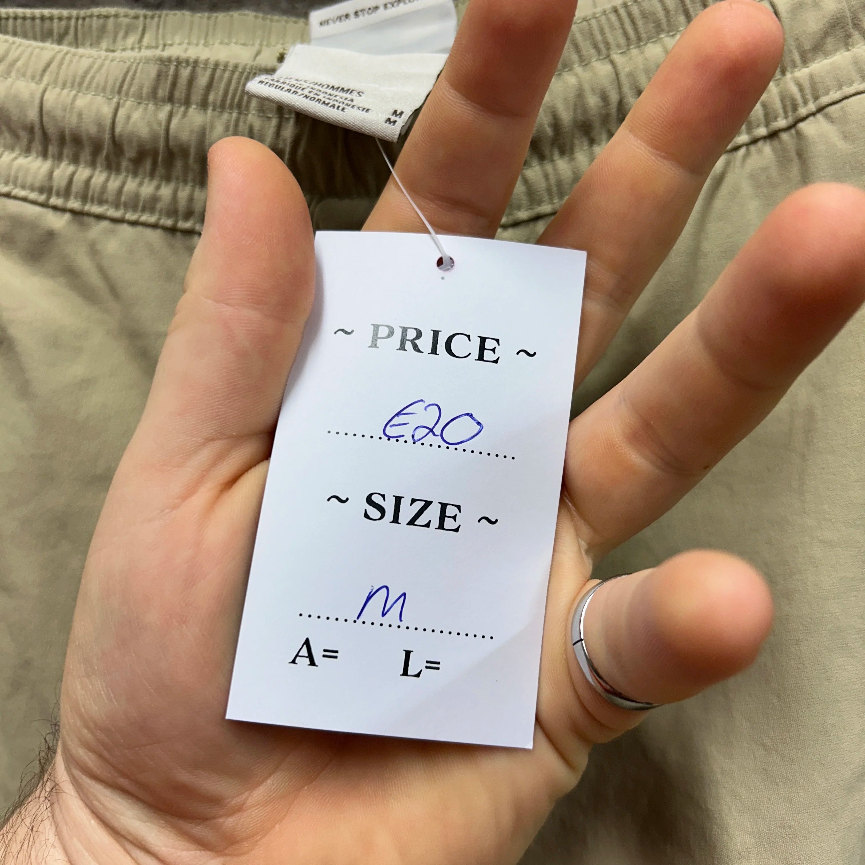 Product details: Elastic waistband, zippered hand and back pockets, subtle North Face logo on back, lightweight woven fabric, some minor wear marks, vintage tag from Irish Dogs. Brand: The North Face.| Label Size | |