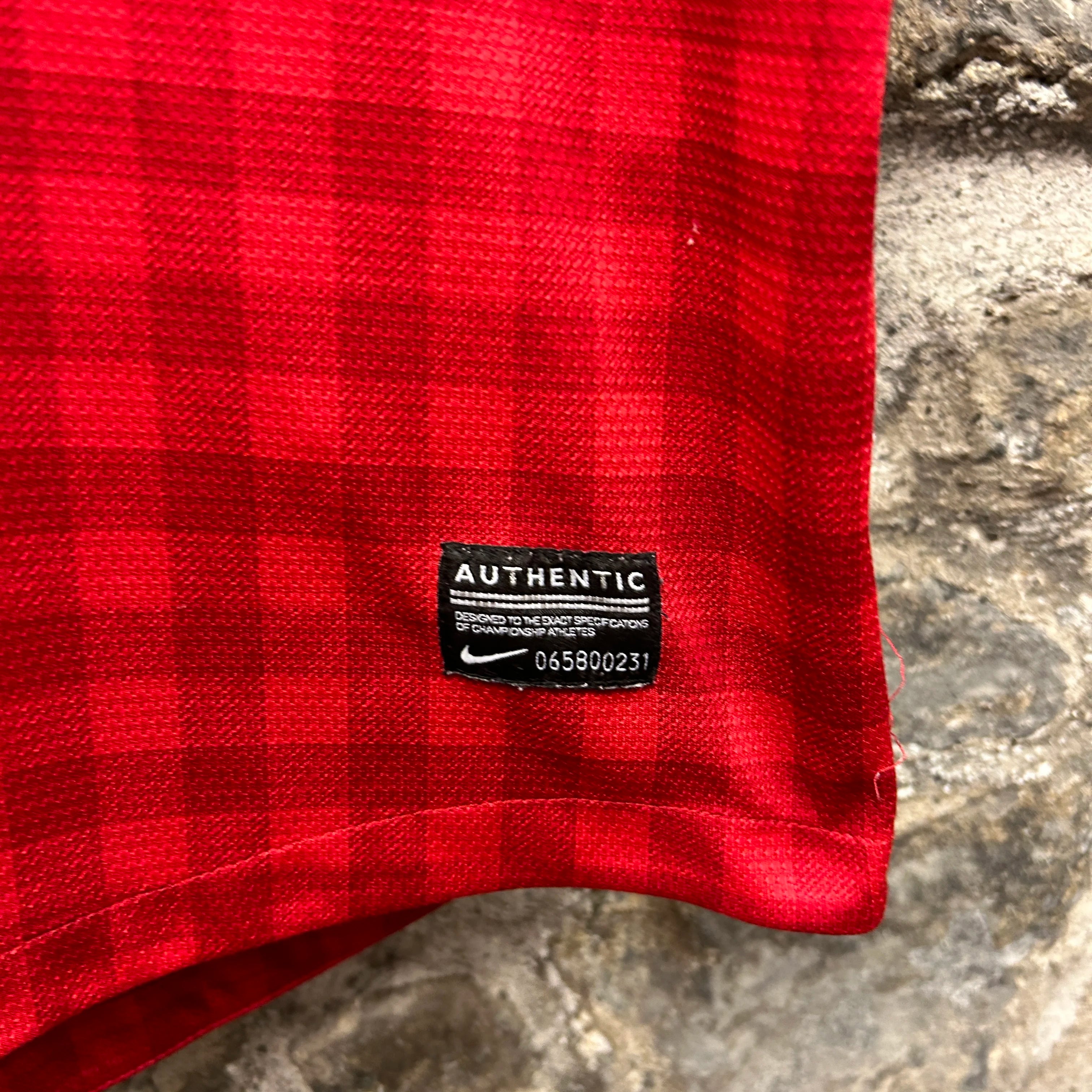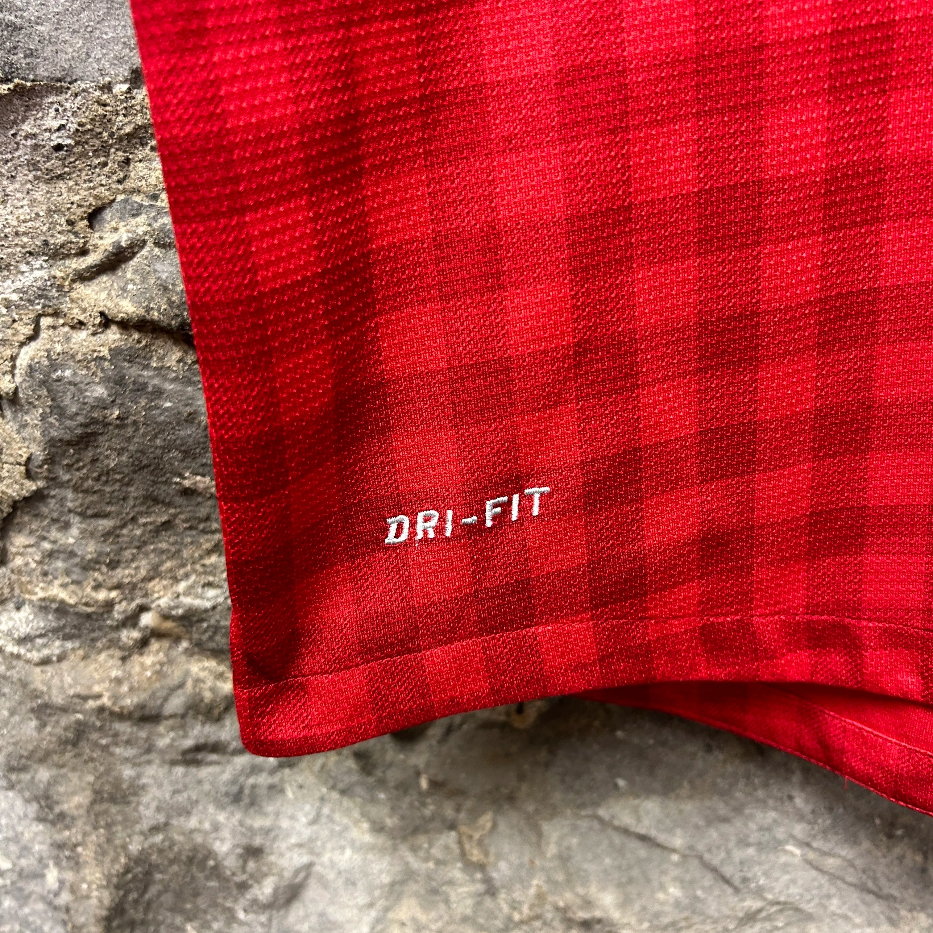 Product details: Classic red gingham print, Nike Dri-Fit technology, embroidered Manchester United crest, Barclays Premier League sleeve patches, 'AON' sponsor print, player-specific 'Rooney 10' print on rear, v-neck collar, authentic patch. Brand: Nike.| Label Size | |